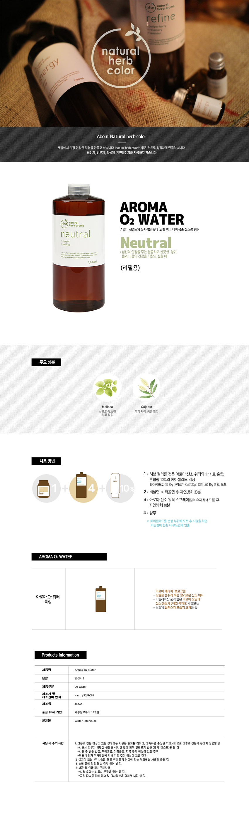 엘로이 아로마 O2 water 뉴트럴 (neutral) 1000ml