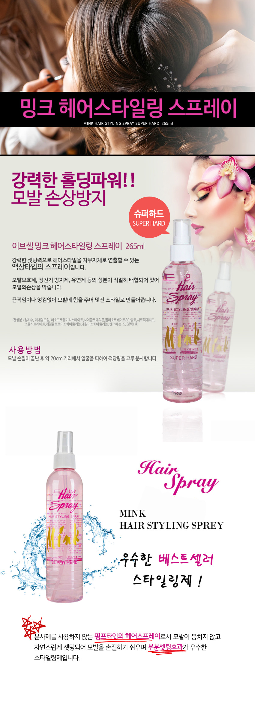 이브셀 밍크 헤어스타일링 스프레이(수퍼하드) 265ml