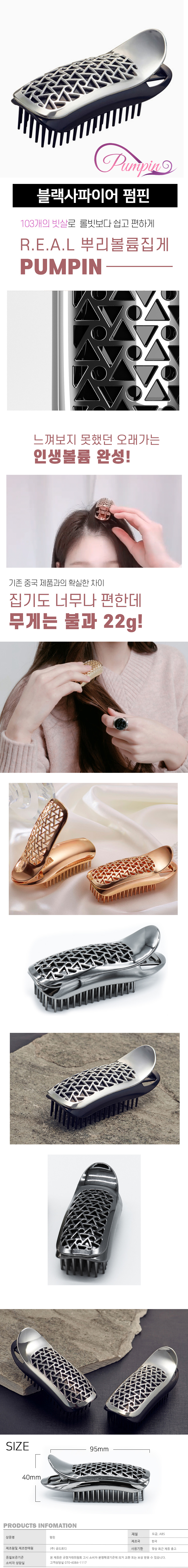 펌핀 뿌리볼륨집게 헤어핀 앞머리볼륨집게-블랙사파이어